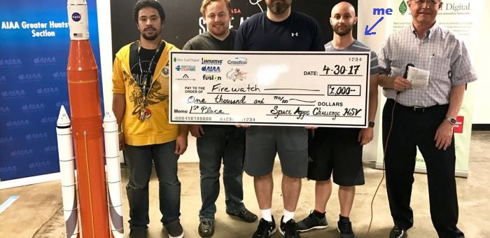 The NASA Space Apps Challenge was a hackathon located in the STEAM Works Studio in Lowe Mill where participants worked for 32 straight hours from April 29, 2017 at 9:00 AM to April 30, 2017 at 5:00 PM to design a software or hardware solution for one of NASA's hand-picked challenges. My team and I - called Project Firewatch - chose the "And YOU can Help Fight Fires!" challenge, where the goal was to build a fire-monitoring and crowdsourcing tool that will allow local fire managers to respond to wildfires. My contribution focused on Linux Bash scripting and Python scripting to automate a process of hourly downloading the newest NASA satellite imagery data consisting of the locations of current fires throughout the world, converting from csv to json, parsing the dataset, and feeding it into the Google Maps application to display location and sizes of current visible fires on a world map.